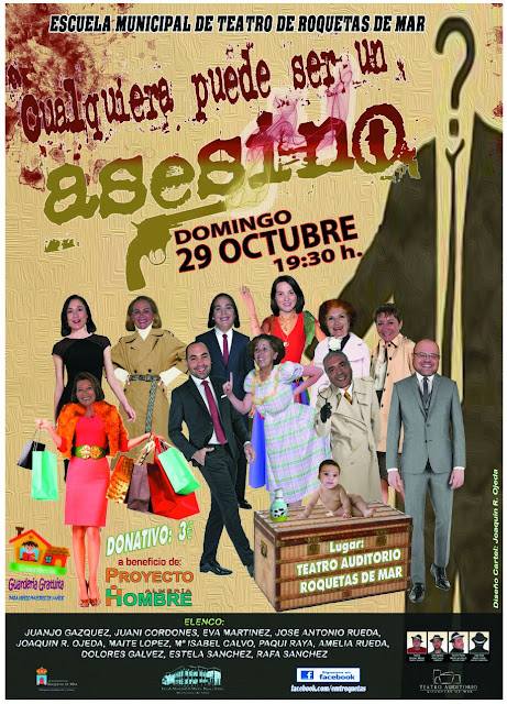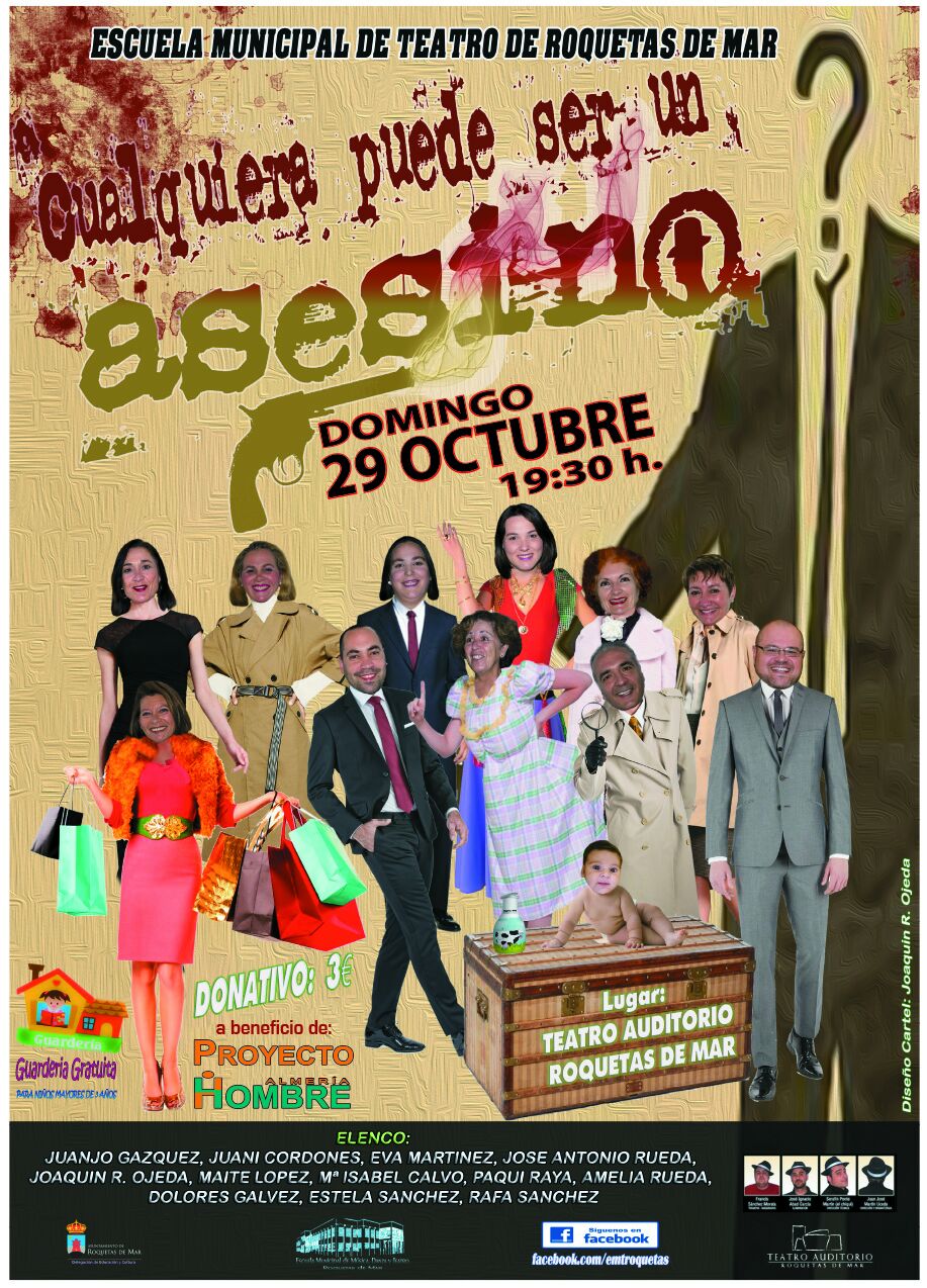 La representación teatro a cargo de D. Juan José Martín Uceda, cuenta con un elenco de jóvenes promesas del territorio almeriense, que nos deleitarán con una obra intrigante y divertida, un nuevo montaje de la Escuela Municipal de Roquetas de Mar basado libremente en la obra de Alfonso Paso “Usted puede ser un asesino. Cualquiera puede ser un asesino, o al menos parecerlo, si se dan un cúmulo de circunstancias. El argumento trata sobre Enrique y Simón que han quedado con unas chicas aprovechando que sus mujeres se van de vacaciones. Pero la noche les deparará un sin fin de sorpresas, dos muertos y una investigación por parte de la policía, que harán reír al público los 100 minutos que dura la representación.
